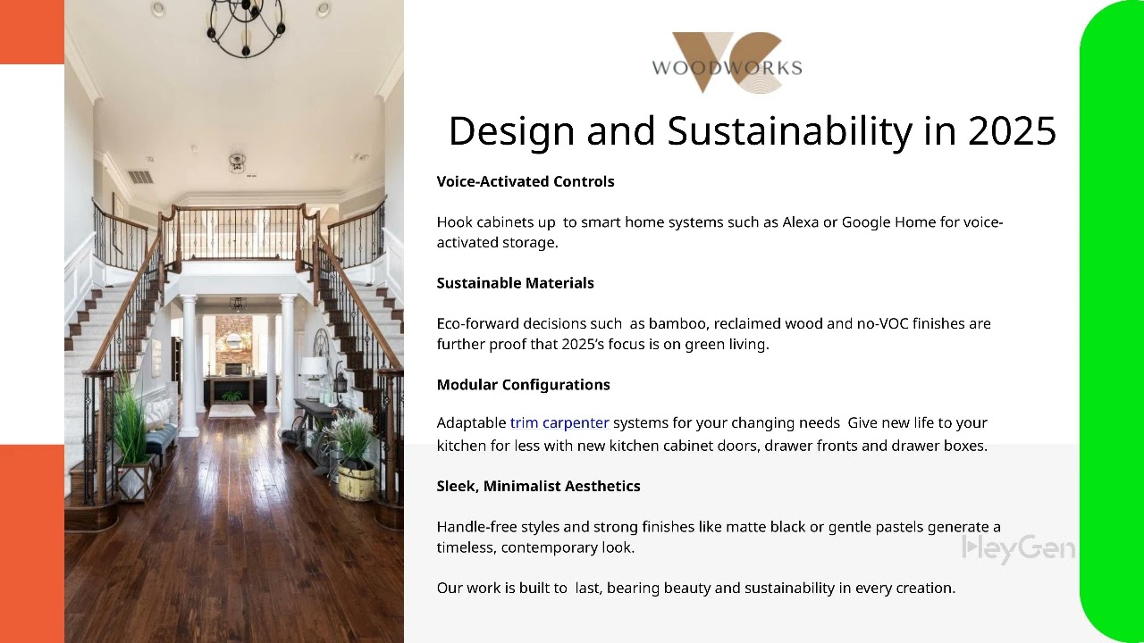 trim carpenter are, in fact, a broader category which concerns not only a cabinetry design with exposed hinges or no pulls (also widely known as “handed-less cabinets”), but at its core, it’s a design that prioritizes functionality. From automated access to internet-of-things connectivity, eco-friendly materials and concealed charging stations, these eight trends reflect a modern tech age of how technology is revolutionizing storage in 2025. With the addition of these advances, homeowners are assured kitchens that are as beautiful as they are useful and future-proof.No matter if you are ready to do a complete remodel, or are starting with something more contained, think about how these modern kitchen cabinets can help make your space more inviting and efficient. Specialists such as VC Woodworks can provide high-quality workmanship and the ability to customize the design (via https://vcwoodworks.com/). Discover these movements now to create a kitchen with both modernity and traditionalism.
