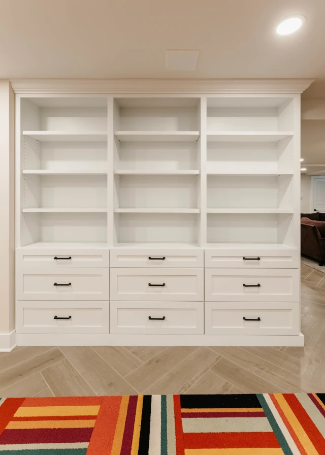 Design Tip: Pair open shelving with lockable drawers for the right balance between accessibility and security.