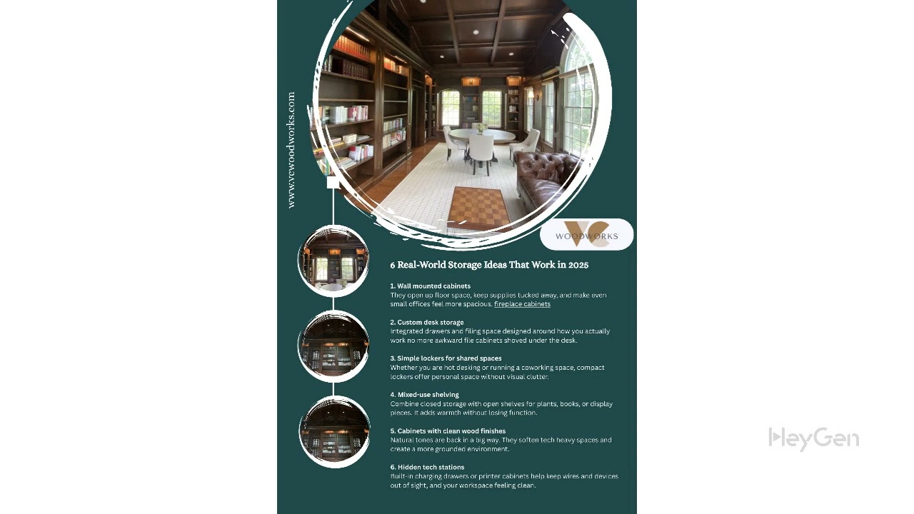 The hybrid Shelf storage that double as a desk extension are the hottest trends of 2025. These units have file storage built into a flat writable or displayable surface — a great addition to smaller offices or hybrid work setups.
