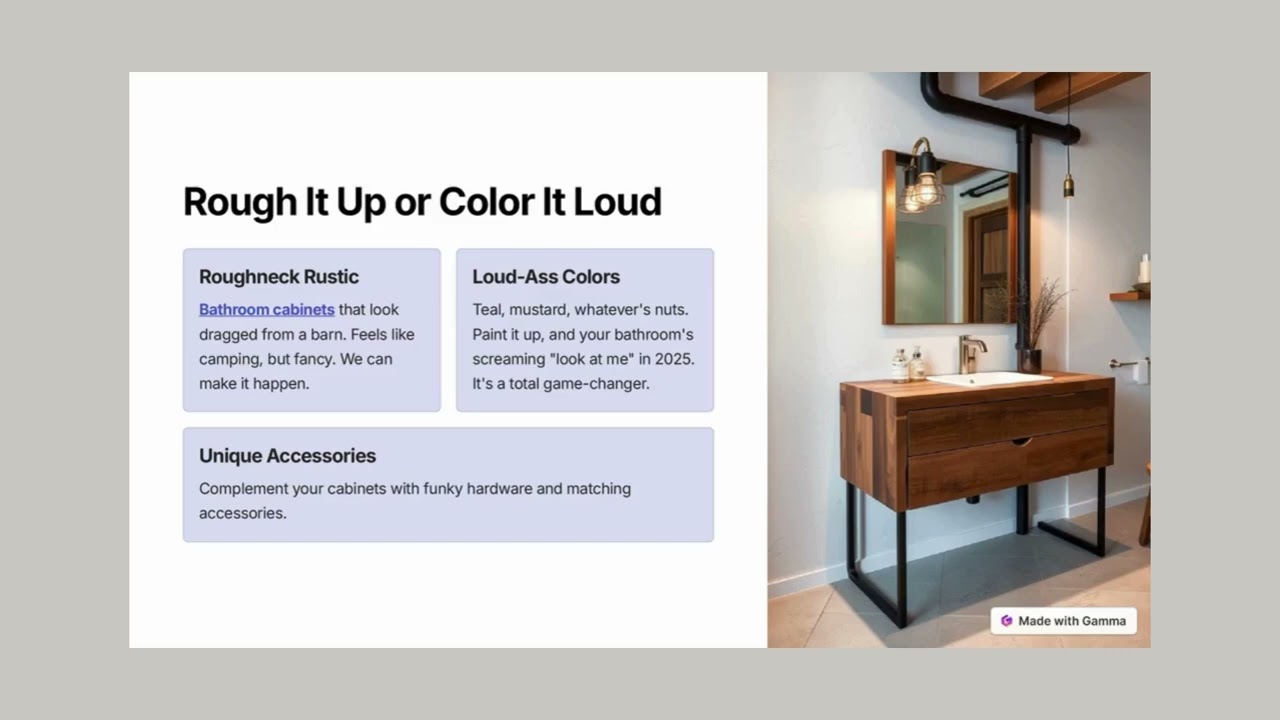 Eco-friendly doesn’t mean boring, and 2025 is proving it! Sustainable vanities are everywhere, and they look so good you’d never guess they’re saving the planet too.What’s Hot: Reclaimed wood—think rustic charm with a story behind it.Bamboo—it’s tough, grows fast, and looks super sleek.Why You’ll Love It: Feels good knowing you’re helping out the environment.Adds this warm, earthy feel that’s hard to beat.VC Woodworks has tons of green options. Your vanity can be stylish and kind to Mother Earth—win-win!